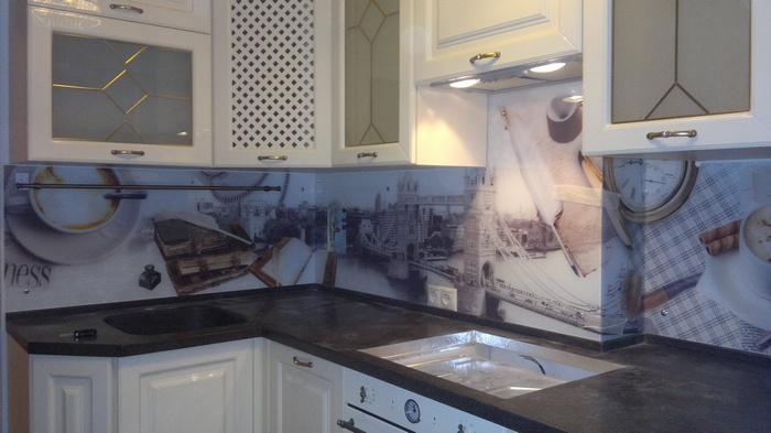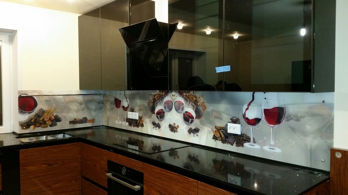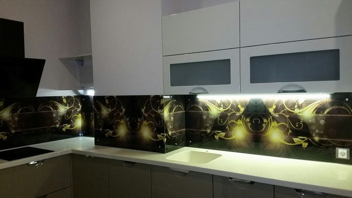 Мы производим стеклянные кухонные фартуки и панели любой сложности