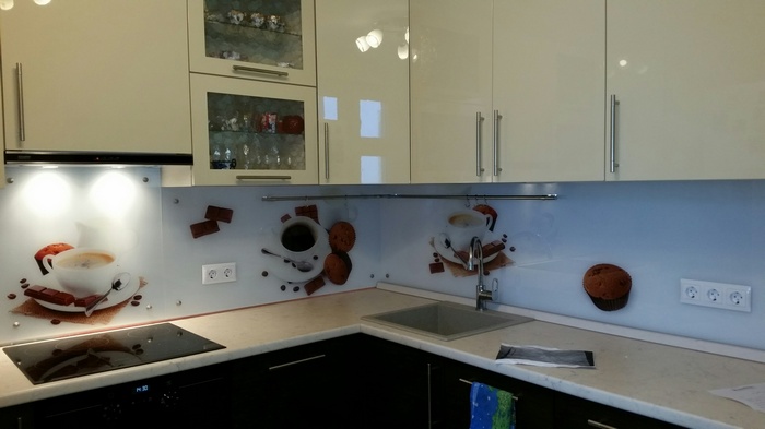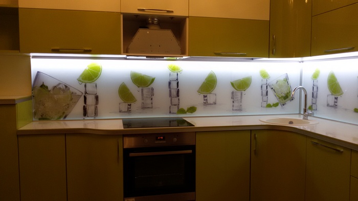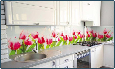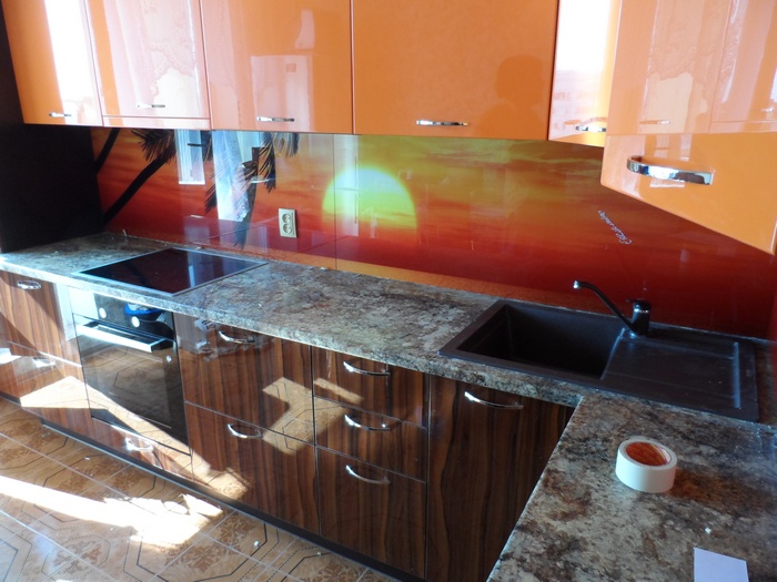 Кухонный фартук из закаленного стекла имеет много преимуществ: