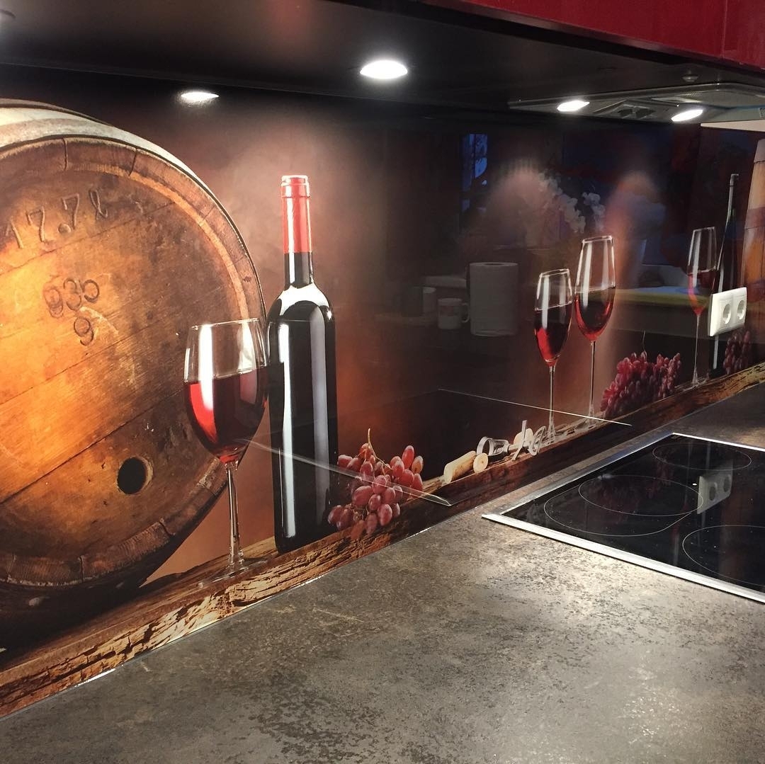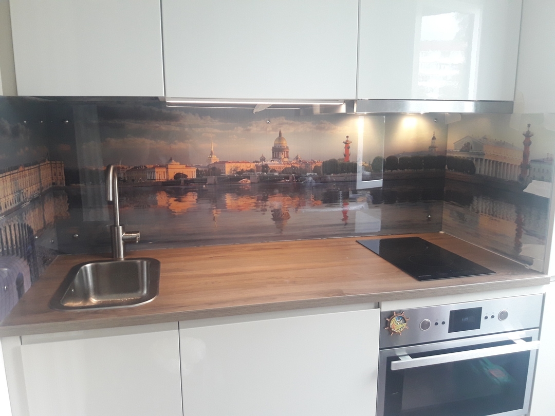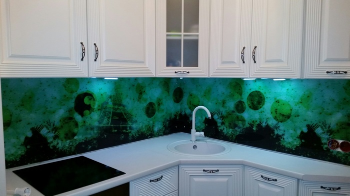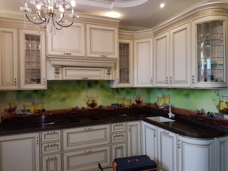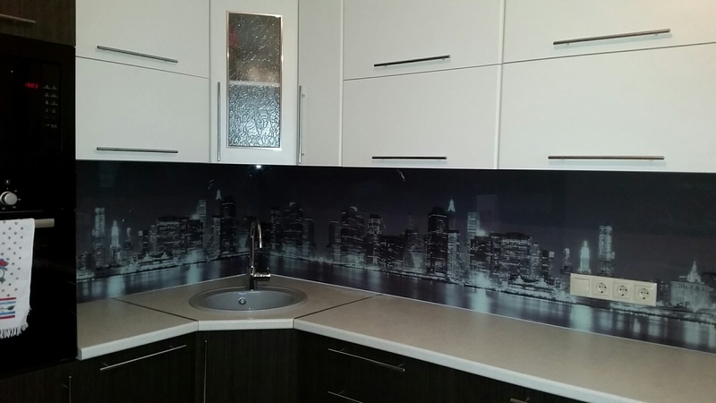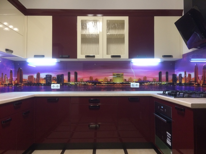 Но, это не главная особенность стеклянных панелей – главная особенность заключается в том, что UV-печать позволяет качественно нанести практически любое изображение, будь то фотография природы, города, лесной пейзаж, или просто набор орнаментов или схематичных изображений. Эта возможность делает скинали отличным элементом дизайна (дизайнер может изобразить на стеклянной поверхности практически все что угодно). Поэтому стеклянные фартуки являются превосходным украшением вашей кухни.