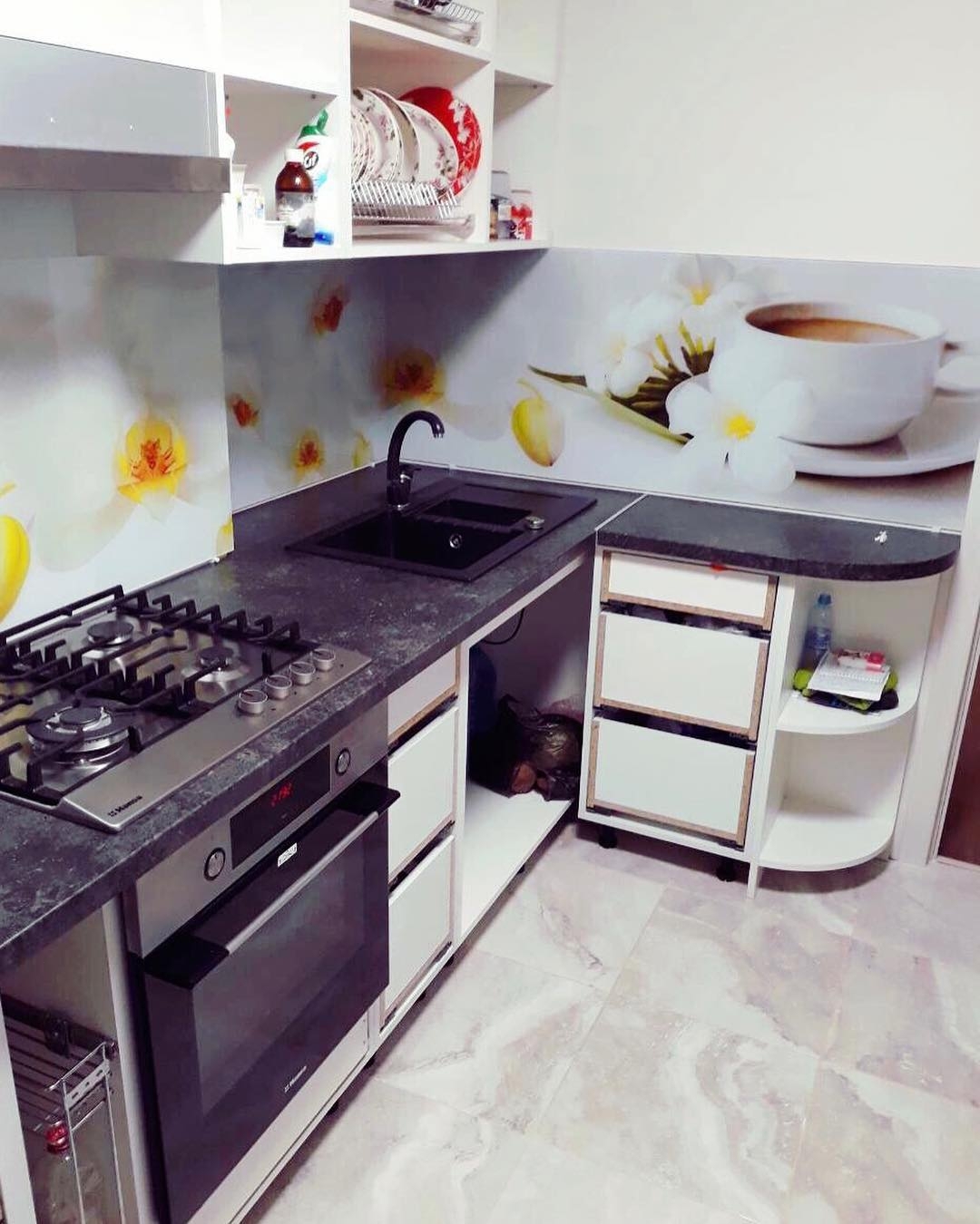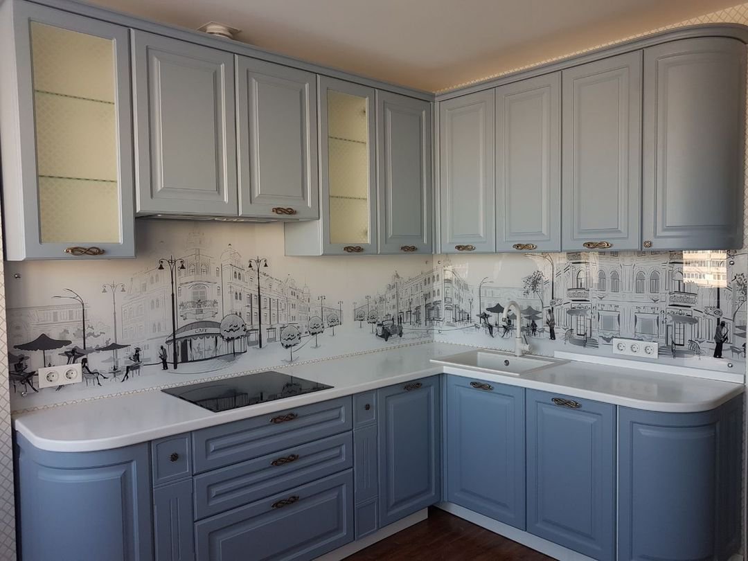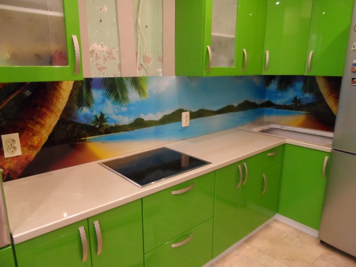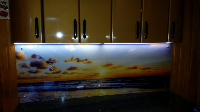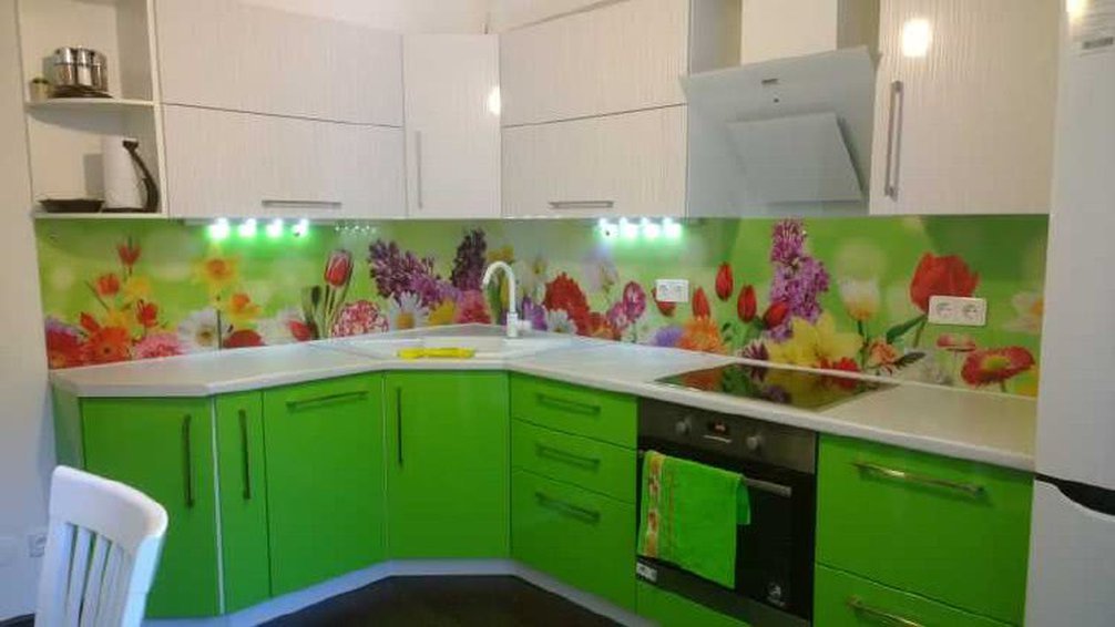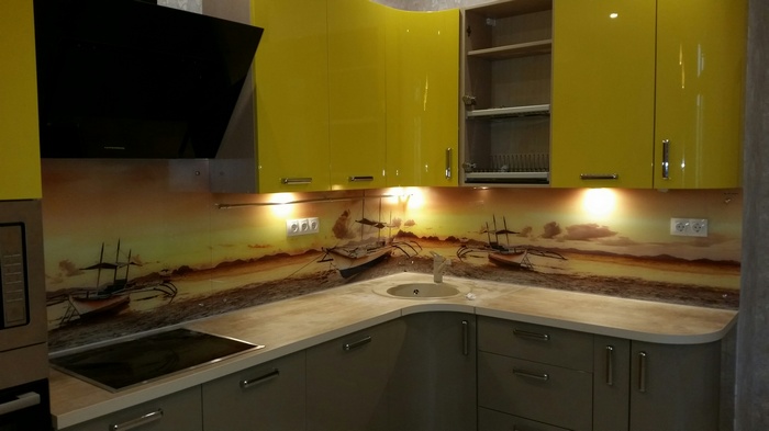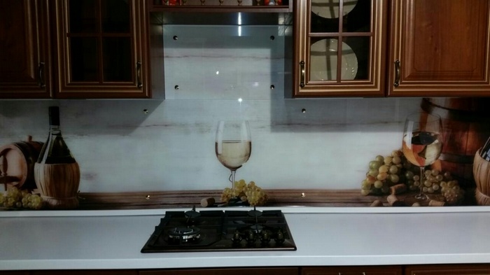 Но, это не главная особенность стеклянных панелей – главная особенность заключается в том, что UV-печать позволяет качественно нанести практически любое изображение, будь то фотография природы, города, лесной пейзаж, или просто набор орнаментов или схематичных изображений. Эта возможность делает скинали отличным элементом дизайна (дизайнер может изобразить на стеклянной поверхности практически все что угодно). Поэтому стеклянные фартуки являются превосходным украшением вашей кухни.